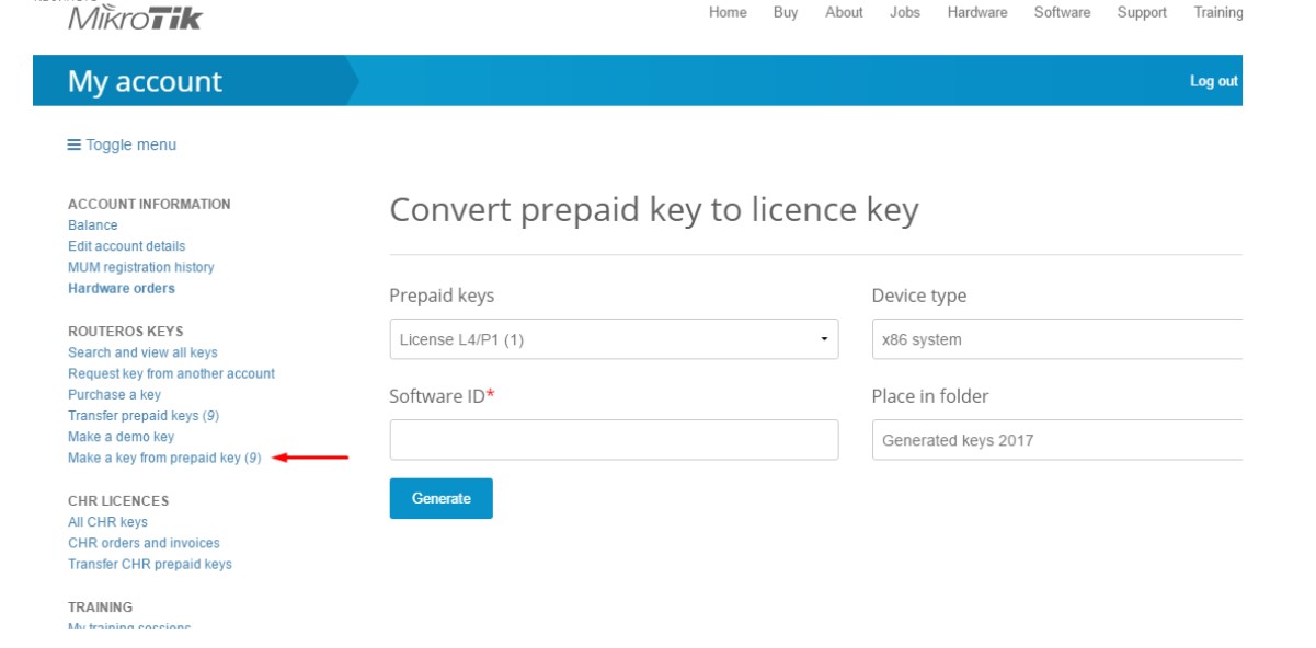 Для перевода оплаченной лицензии необходимо пройти регистрацию на сайте https://mikrotik.com