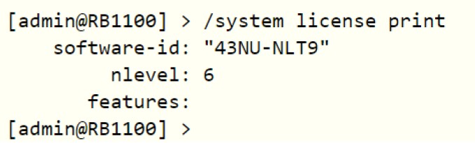 выполнить команду /system license print
