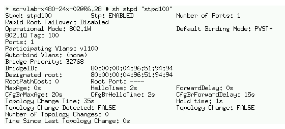 Проверить работу протокола можно, выполнив команду: show stpd stpd100