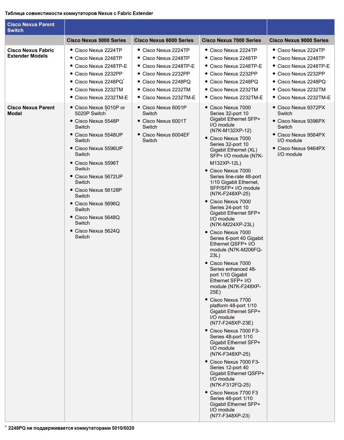 | Линейка Cisco | Nexus 2000 |