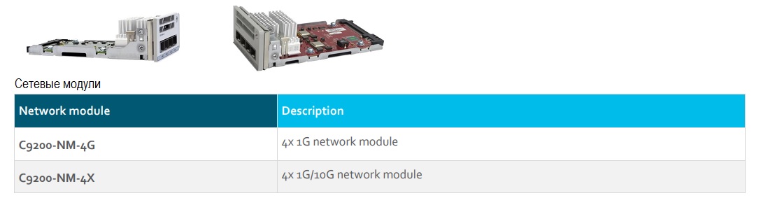 - Два опциональных модуля для аплинков: C9200-NM-4G, C9200-NM-4X