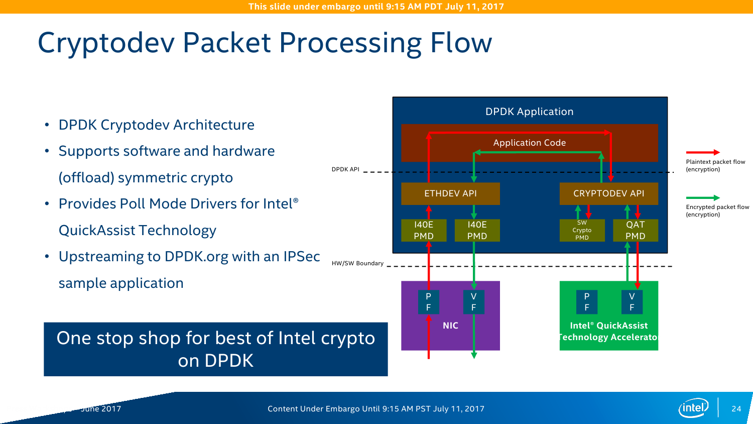 Для разработчиков Intel предоставляет набор Data Plane Development Kit (DPDK), который позволяет наиболее полно задействовать все возможности по работе с данными на новой платформе. Дополняет его Intelligent Storage Acceleration Library (ISA-L). Как бы это странно ни звучало для обывателя, но для РФ именно они весьма и весьма актуальны из-за необходимости прохождения различных процедур в ФСБ в связи с использованием стойкого шифрования. То есть в некоторых структурах использование Intel QAT может быть запрещено. Строго говоря, российские разработчики и так массово перешли на DPDK при создании различных security-продуктов.