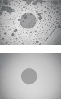 Эффективность очистки очень высокая, что иллюстрируют нижеприведенные снимки. На первой фотографии показан торец оптического коннектора после прикосновения пальцем. На второй – тот же торец после однократной процедуры очистки..jpg)