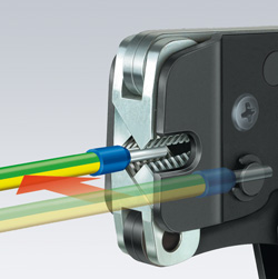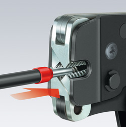 Инструмент Knipex KN-975308 предназначен для опрессовки контактных гильз, которые устанавливаются фронтально. При работе инструмент автоматически настраивается под необходимый размер контактных гильз.