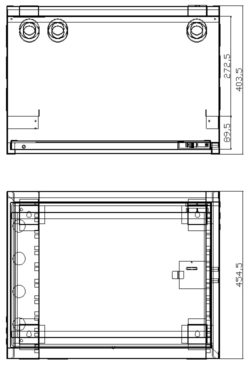 На задней стенке шкафа предусмотрено место для размещения запаса кабеля. Сверху и снизу шкафа предусмотрены съемные заглушки для ввода кабеля.
