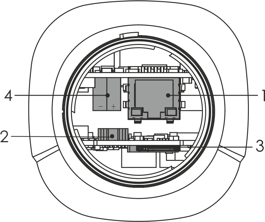 - Кнопка сброса RESET. Удерживать 15 секунд при работающей камере.