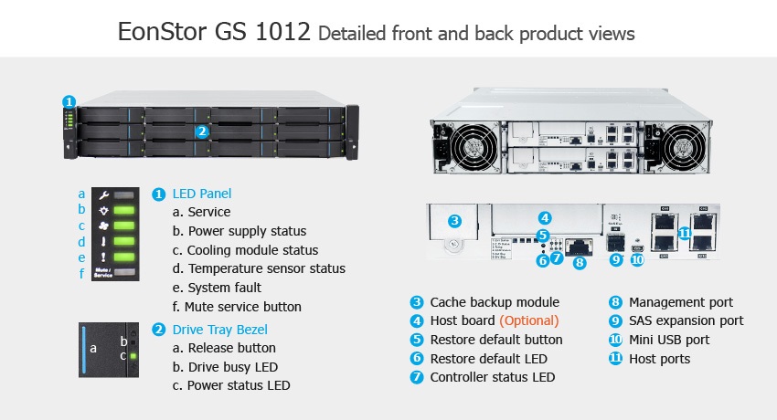 Серия EonStor GS 1000—это корпоративное решение начального уровня, специально разработанное для СМБ. Она обеспечивает непрерывные сервисы и всестороннее хранение данных, совместное использование файлов и облачную интеграцию, позволяя ИТ-персоналу эффективно управлять всеми видами легких рабочих нагрузок SAN и NAS по доступной цене. EonStor GS 1000 обладает исключительной расширяемостью емкости более 4 ПБ и двумя наборами модульных хост плат для легкого удовлетворения потребности будущего роста данных и преобразования архитектуры. Таким образом, GS 1000 является идеальным выбором для бюджетных целей.