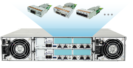 Для широкого спектра корпоративных приложений требуются коммуникационные интерфейсы, которые отличаются для каждого приложения. Infortrend предоставляет богатые коммуникационные интерфейсы в средах SAN, включая 8Гбит/с FC, 16Гбит/с FC, 32Гбит/с FC, 1Гбит/с iSCSI, 10Гбит/с iSCSI, 40Гбит/с iSCSI и 12Гбит/с SAS для обеспечения полной совместимости со всеми приложениями. Кроме того, порты 1-гигабитные Ethernet, 10-гигабитные Ethernet, 25-гигабитные Ethernet, 40-гигабитные Ethernet также предлагаются в сетевых средах для обеспечения быстрого и надежного обмена данными и качества передачи данных.