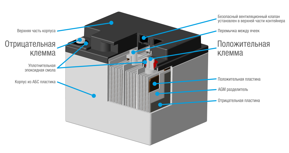 Предназначен для работы в буферном режиме (постоянный подзаряд) или циклическом режиме (разряд-заряд). Многослойная технология конструкции аккумулятора, ячеистая конструкция батареи, специальный клей, обеспечивает компактность и защиту от вибраций и ударов. Корпус и крышка батареи изготовлены из негорючего ударопрочного пластика ABS. Защитный клапан выполнен пожаровзрывобезопасными.