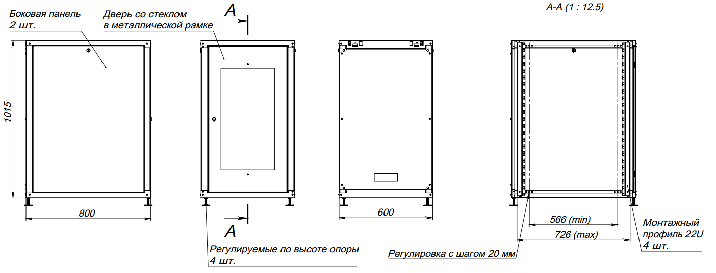 | Габаритные размеры телекоммуникационного шкафа 22U |